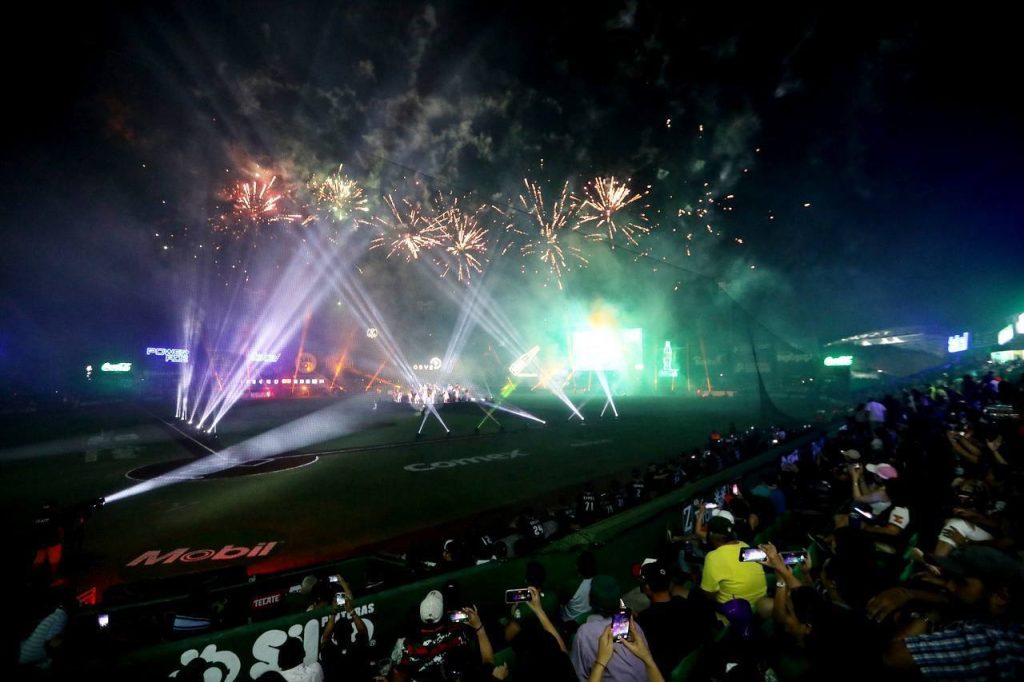 MAZATLÁN.- Con un gran espectáculo se puso en marcha la temporada de la Liga Mexicana de Beisbol 2023, en el estadio Kukulcán, casa de los Leones de Yucatán, en un ambiente a lo grande, con música y juegos pirotécnicos.