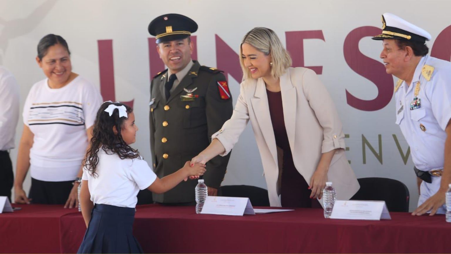 Al evento también asistieron la Síndica Procuradora, Minerva Osuna Zavala; el Tesorero Municipal, Julio César Ramos Robledo; regidores del Cabildo; la Comisaria de San Francisquito, Ramona González Bonilla; representantes del Octavo Batallón de Infantería y de la Capitanía de Puerto, así como funcionarios del sector educativo.