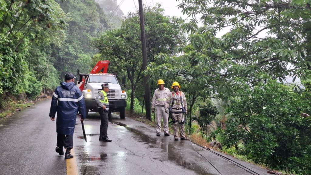 Al corte de las 6:30 de la mañana, las torrenciales lluvias y potentes rachas de viento afectaron la red eléctrica, principalmente en la zona de la playa Zicatela perteneciente a Santa María Colotepec.