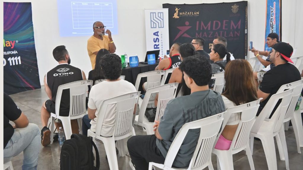 MAZATLÁN.- Con el objetivo de fortalecer el crecimiento y la profesionalización del fisicoculturismo y fitness en la región, el reconocido capacitador nacional e internacional José Luis Rentería impartió el Curso de Formación y Actualización para Jueces Taller de Poses, en el Salón de Usos Múltiples del IMDEM Mazatlán.