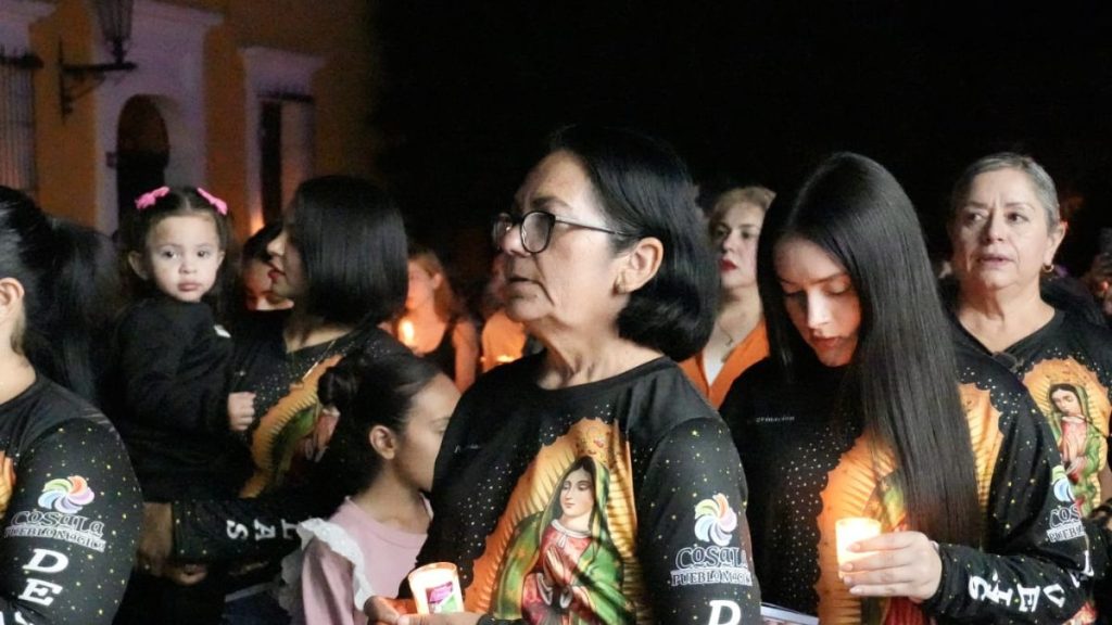 La secretaria de Turismo de Sinaloa, Mireya Sosa Osuna, y la Presidenta Municipal, Carla Úrsula Corrales, iniciaron con la tradicional peregrinación y la procesión que guía la imagen de la Virgen de Guadalupe a través de las calles iluminadas únicamente por miles de velas.