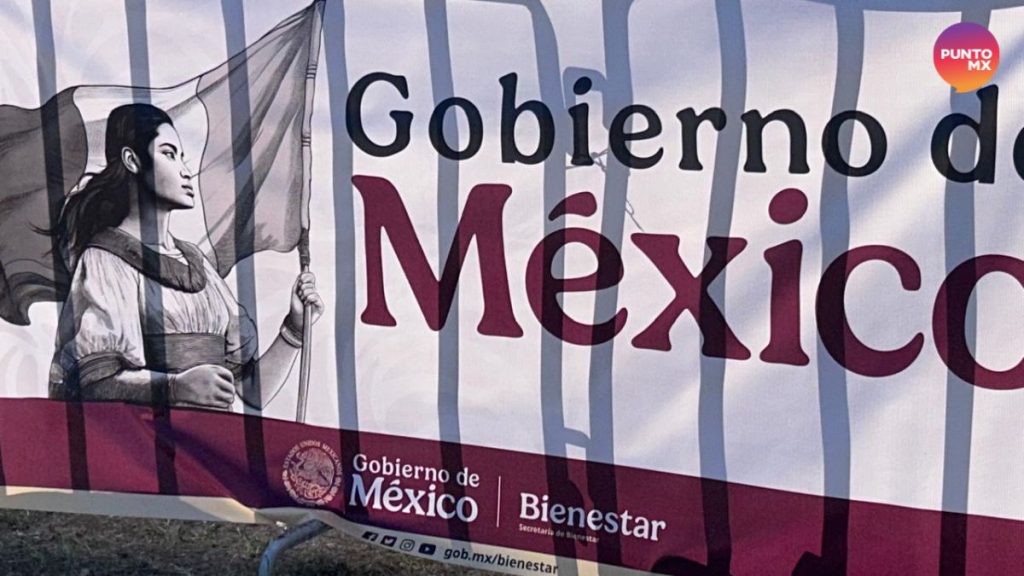 El motivo fue lo de menos, Programas e Infraestructura para el Bienestar, rezaba la lona tras presídium.